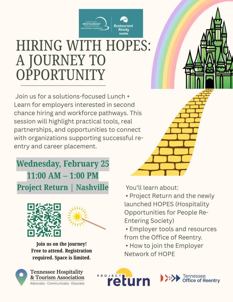 Join us for Hiring with HOPES: A Journey to Opportunity, an employer-focused Lunch + Learn that will officially introduce and launch the HOPES program, a new initiative designed to support second chance hiring through training, partnership, and employer engagement.